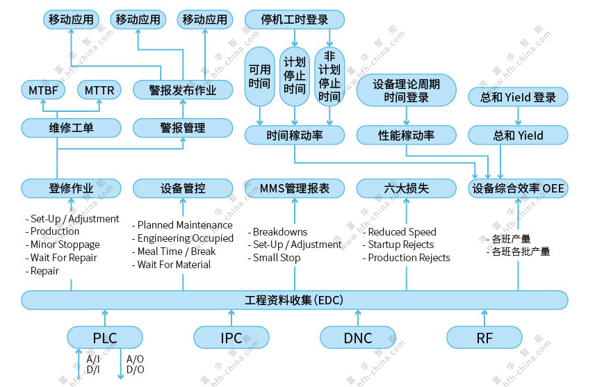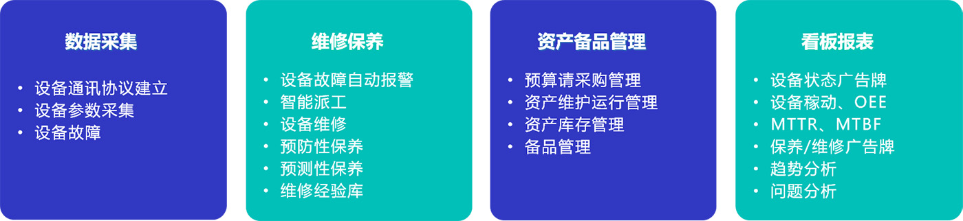 我們的系統(tǒng)主要從設備的即時數(shù)據采集,設備維修預防保養(yǎng),資產備品管理,看板報表等方面對設備進行管控,它結合了數(shù)據總線,B/S微服務架構及移動技術,實時數(shù)據采集/監(jiān)控,自動消息推送及現(xiàn)場移動點檢/維修
